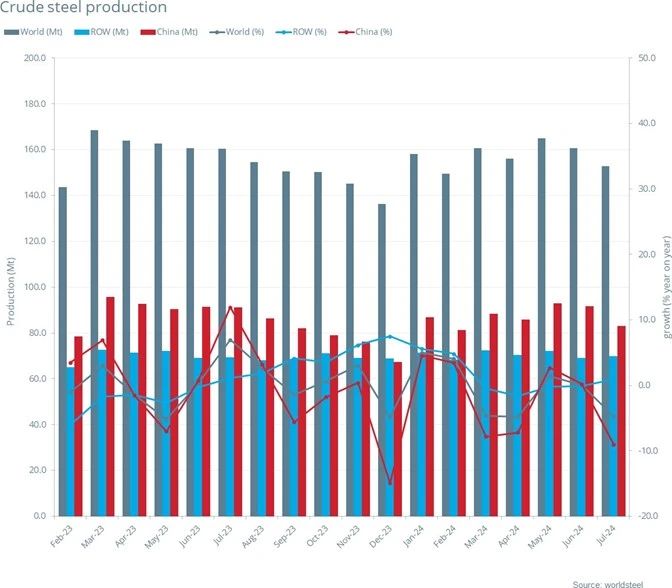 2024年7月全球粗鋼產(chǎn)量