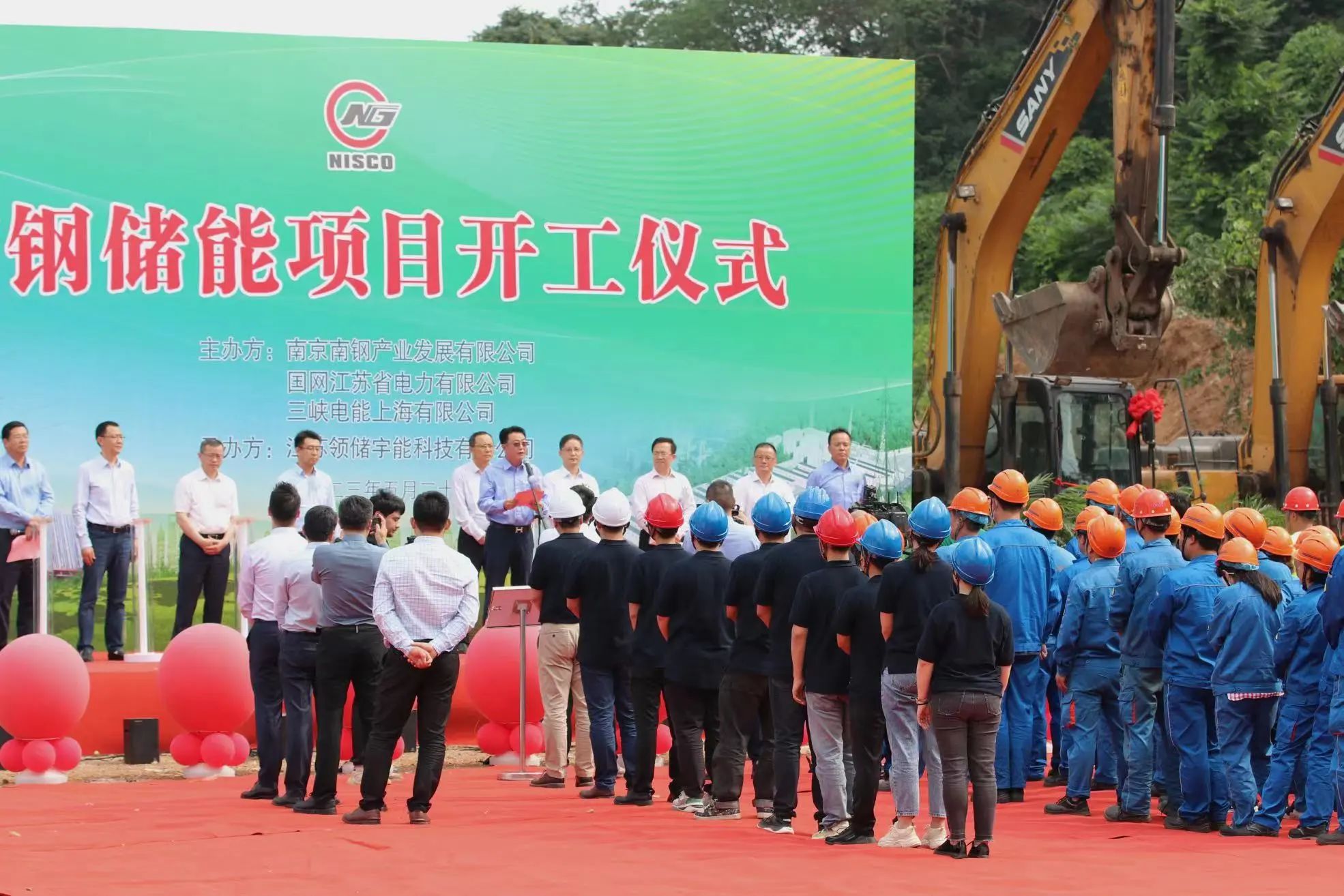 南京市工業(yè)和信息化局局長(zhǎng)葉榮生,南京市發(fā)展和改革委員會(huì)副主任田崢嶸,國(guó)網(wǎng)江蘇省電力有限公司副總經(jīng)理吳爭(zhēng),國(guó)網(wǎng)南京供電公司總經(jīng)理唐建清、副總經(jīng)理王文天,長(zhǎng)江三峽投資管理有限公司副總經(jīng)理苗永寶、三峽電能(上海)公司總經(jīng)理趙陽(yáng),國(guó)網(wǎng)江蘇綜合能源服務(wù)有限公司總經(jīng)理管益斌,國(guó)網(wǎng)南京市江北新區(qū)供電公司黨委書記陳冰冰,南京市綜合能源服務(wù)有限公司總經(jīng)理何劍,南鋼黨委書記、董事長(zhǎng)黃一新、副總裁朱平,總承包單位、系統(tǒng)集成、監(jiān)理單位等代表出席開工儀式。