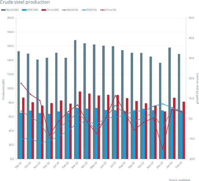 2024年2月全球粗鋼產(chǎn)量